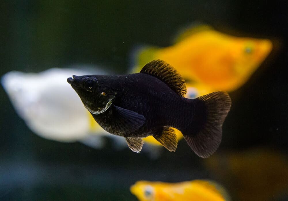 Совместимость: моллинезия баллон миролюбивая, её можно содержать вместе с другими живородящими рыбками (гуппи, пецилиями, меченосцами), барбусами, радужницами, коридорасами. Агрессивных рыб следует исключить из списка возможных сожителей, например, астронотусов, акар, малавийских цихлид.
