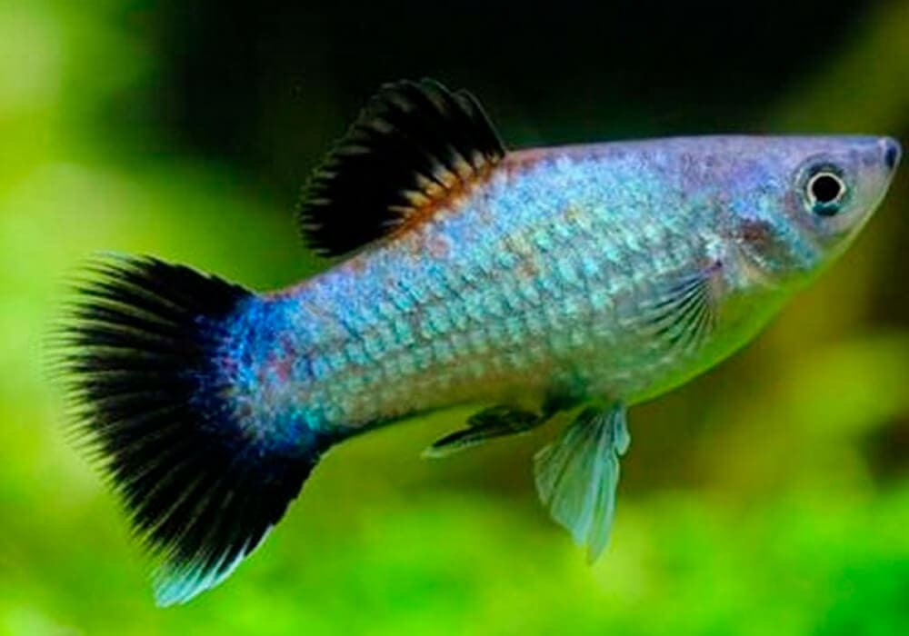 - Голубые пецилии — живородящие. Икра развивается в теле самки, а не во внешней среде. На свет рыбки «рождают» уже полностью сформированного малька.