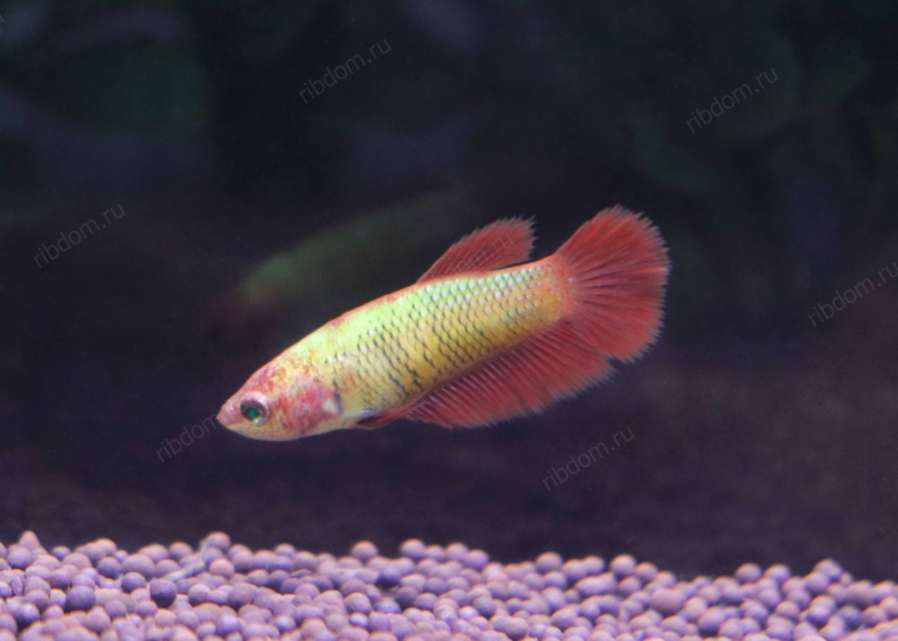 - Тело компактное, плавники короче, чем у самцов, но с лёгким расширением хвоста, характерным для формы Super Delta.