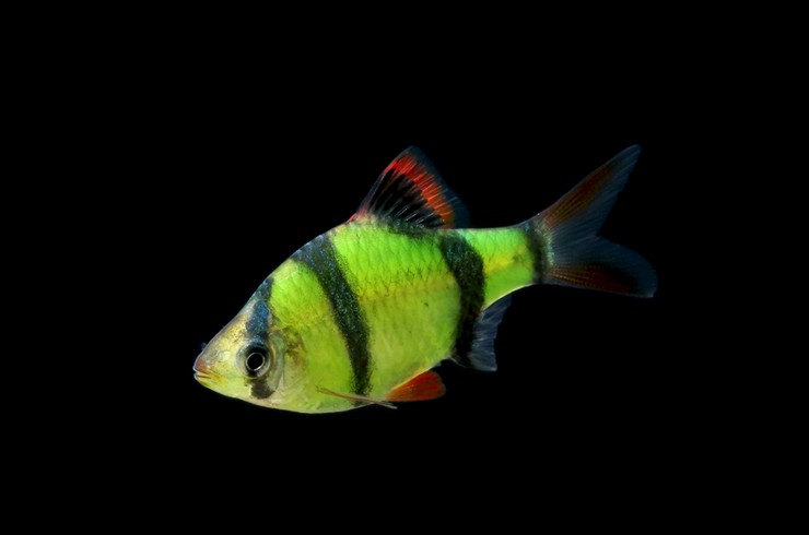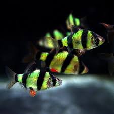 Барбус ГлоФиш (Barbus GloFish) — это генетически модифицированная версия популярного суматранского барбуса (Puntius Tetrazona), обладающая яркой флуоресцентной окраской. Эти рыбки загораются специальным (как правило, синим или УФ) светом благодаря встроенному гену медуз или кораллов, производящему флуоресцентный белок.