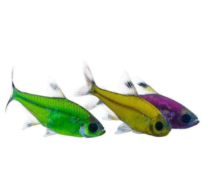Тетра Пристелла ГлоФиш (Pristella maxillaris GloFish) — это мирная, активная стайная рыбка, известная своим полупрозрачным телом и ярким флуоресцентным окрасом, полученным путем генетической модификации.