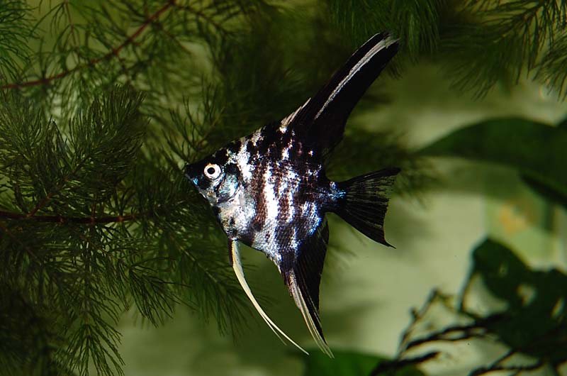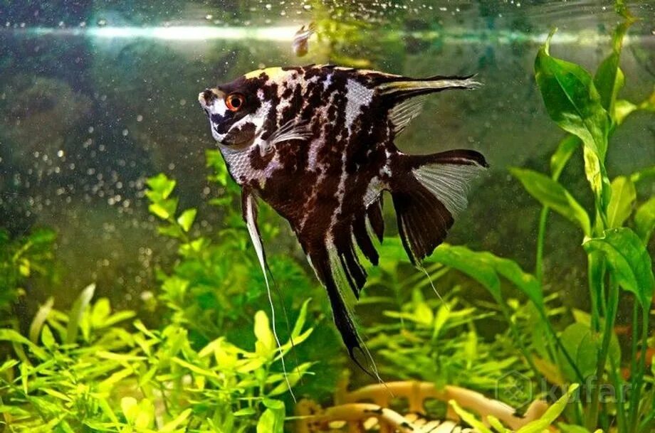 Скалярия мраморная — селекционная форма обыкновенной скалярии (Pterophyllum scalare). В природе таких рыбок встретить не получится.