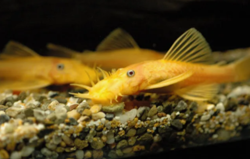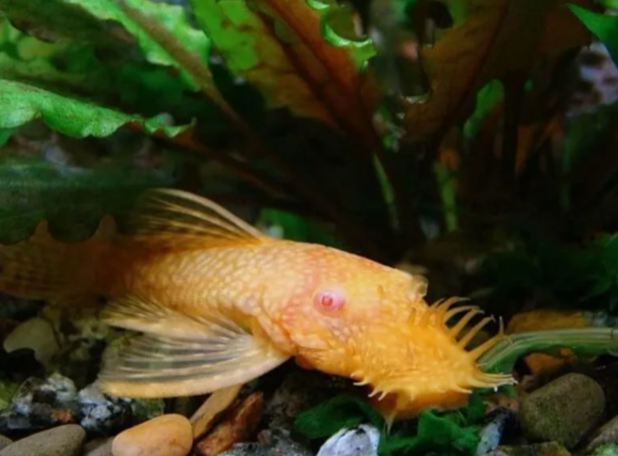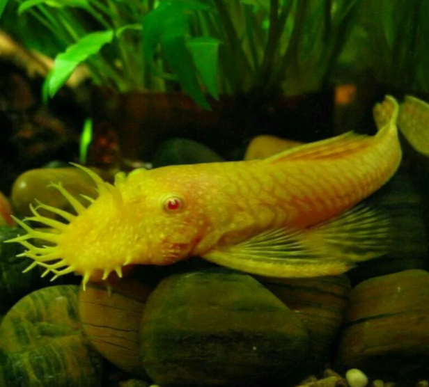 Анциструс золотой (альбинос) — альбиносная форма обыкновенного анциструса (Ancistrus dolichopterus). Из-за отсутствия пигментации рыбки выглядят в воде золотыми или светящимися.