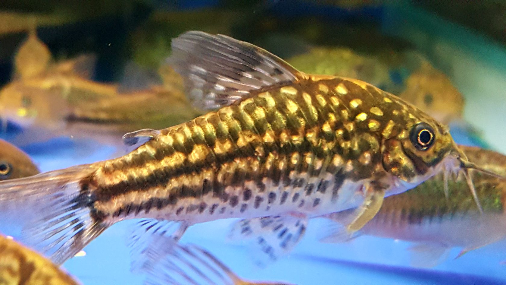 По всему телу коридорасов идут несколько рядов перекрывающих друг друга костных пластин, которые создают подобие панциря. Это позволяет рыбкам защищаться от хищников.