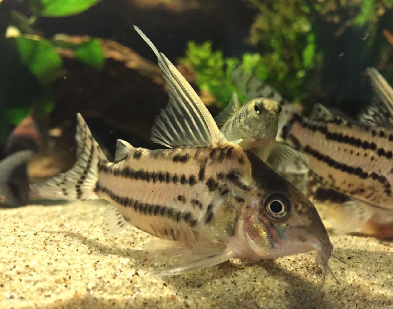 Также у коридорасов есть небольшие усы, которые используются для поиска пищи на дне аквариума. Глаза большие, подвижные, что позволяет хорошо ориентироваться в пространстве и быстро находить еду.
