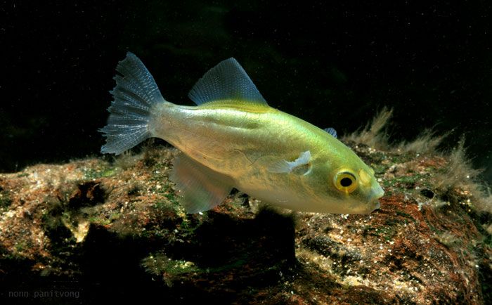 - Питание: всеядная рыба, в естественных условиях питается мелкими насекомыми, креветками и улитками. В аквариумных условиях хорошо ест мотыля, трубочника, артемию, улиток, мясо креветок, а также разнообразные сухие корма в виде хлопьев и гранул.
