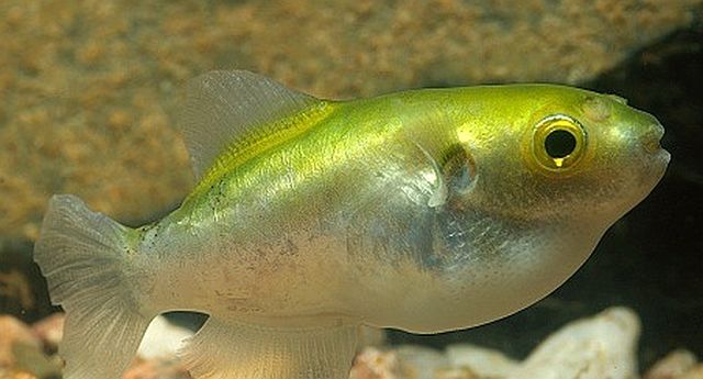 - Благодаря яркой окраске рыбку иногда считают морской, хотя это не так — тетраодон обитает в пресной воде.