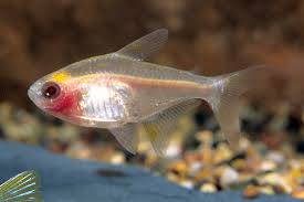 Внешний вид: Главное отличие альбиносной формы — это отсутствие пигментации. Тело рыбки имеет полупрозрачный белый или золотистый оттенок, сквозь который хорошо просматривается скелет и внутренние органы, что дало название "тетра-рентген". Глаза обычно розовые или красные, характерные для альбиносов.