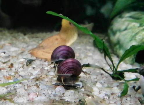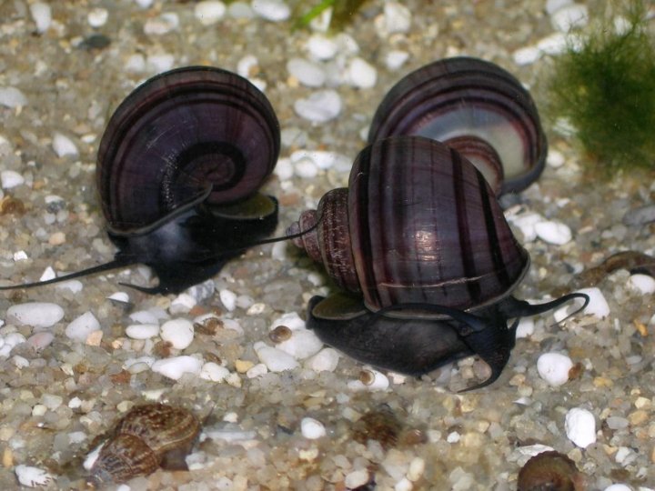 - Не рекомендуется поселять этот вид улиток с рыбами, которые мечут икру на открытые гладкие поверхности, так как улитка может повредить кладку или полакомиться икринками.