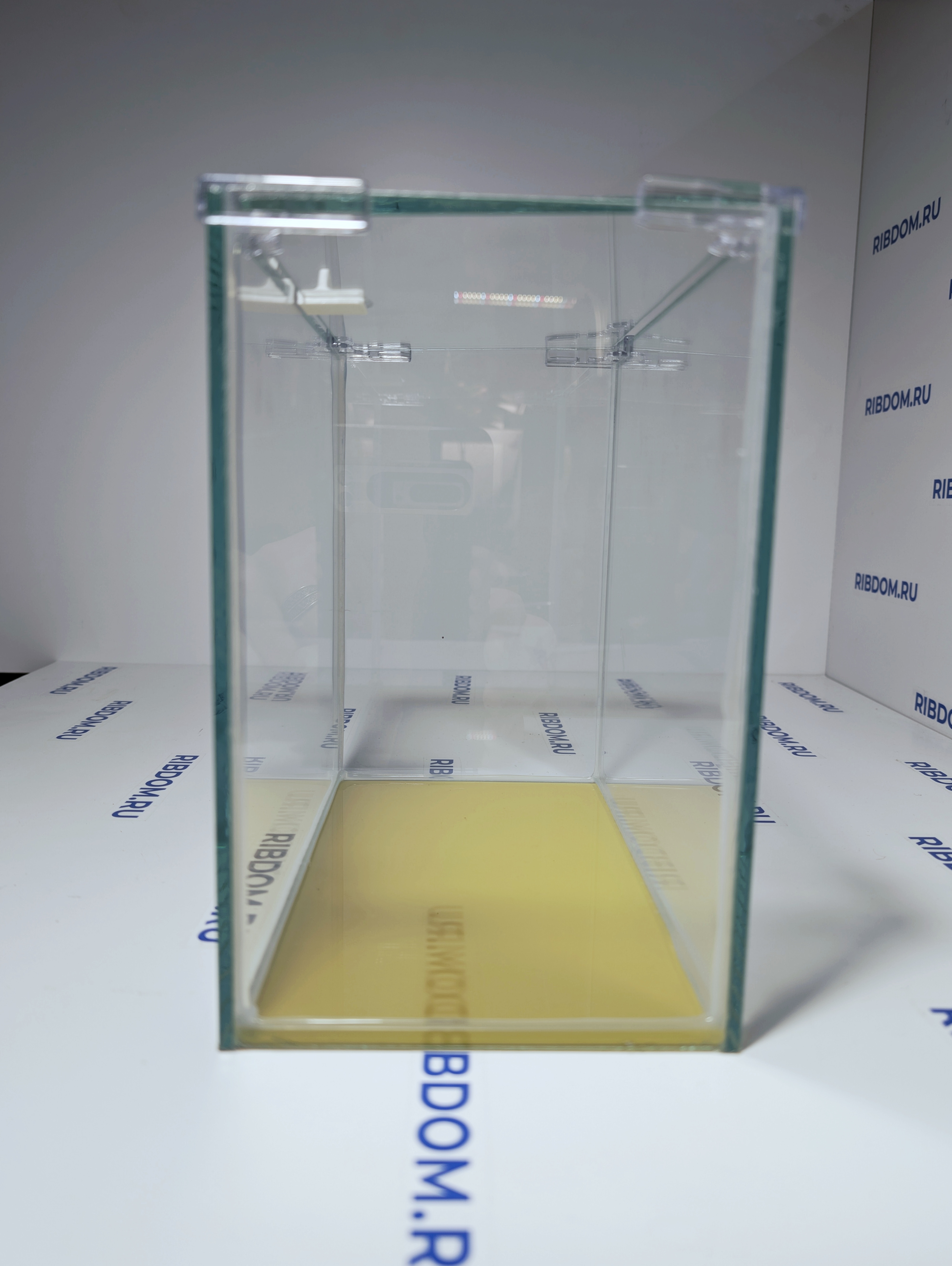 Данная модель аквариумов склеена клеем европейского производителя, срок годности не ограничен. Имеет стеклянную крышку. Подойдет для содержания гуппи эндлера, креветок, пецилий, данио, крабиков, раков, лягушек и др. Наличие покровного стекла гарантирует безопасность для таких рыбок как петушок, креветок и других видов которые склонны к выпрыгиванию из аквариума, плюс сохраняется тепло внутри куба по сравнению с открытыми аквариумами.