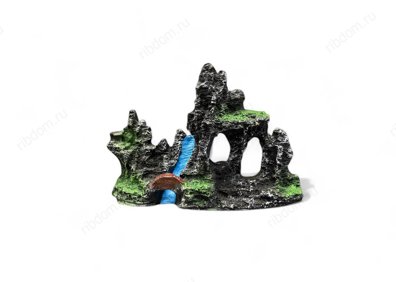 Декорация «Грот малый с рекой» (GS0604) — компактная декоративная скала с гротом и имитацией голубой реки. Подходит для небольших и средних аквариумов, создаёт уютную атмосферу и служит укрытием для рыб и креветок.